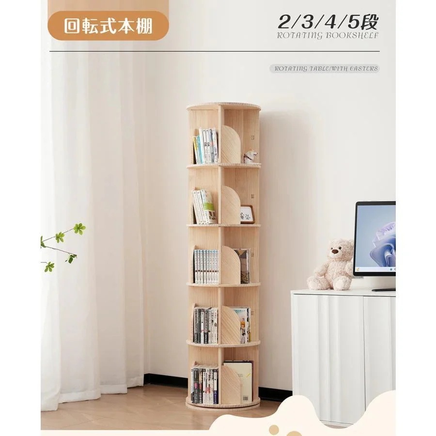 木製 ブックシェルフ 天然木 DVDラック 子供 五段 スリム 飾り棚 絵本棚 キャスター付き A4対応 コミック収納棚 二段 回転本棚 四段 漫画 回転ラック 三段 おもち 絵本 短納期!回転式本棚