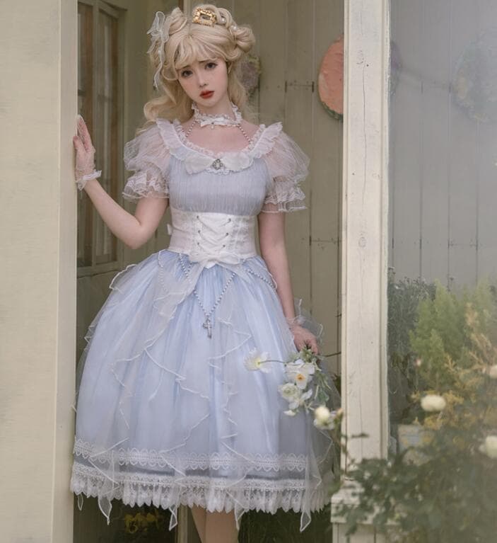 ブルーレーベルクレストブリッジ リボンフレアスカート ピンク ウール 38