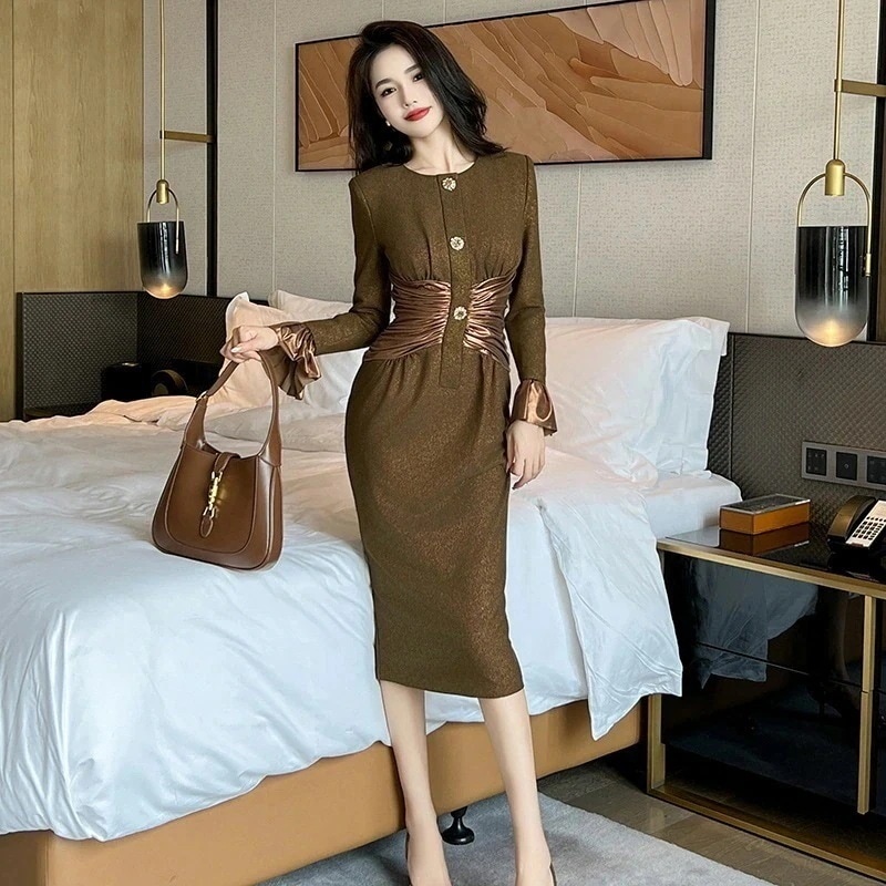 khaki レースワンピースドレス 膝丈