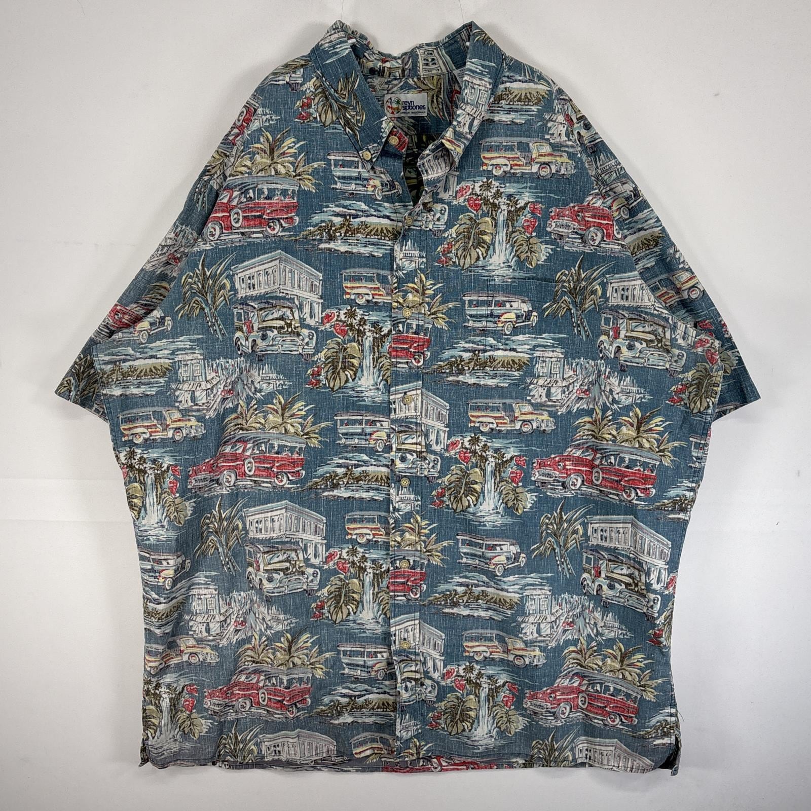 古着 90s/90年代 半袖シャツ アロハ 旧車 インサイドアウト 大きいサイズ 3XL ブルー系 総柄 メンズ半袖シャツ