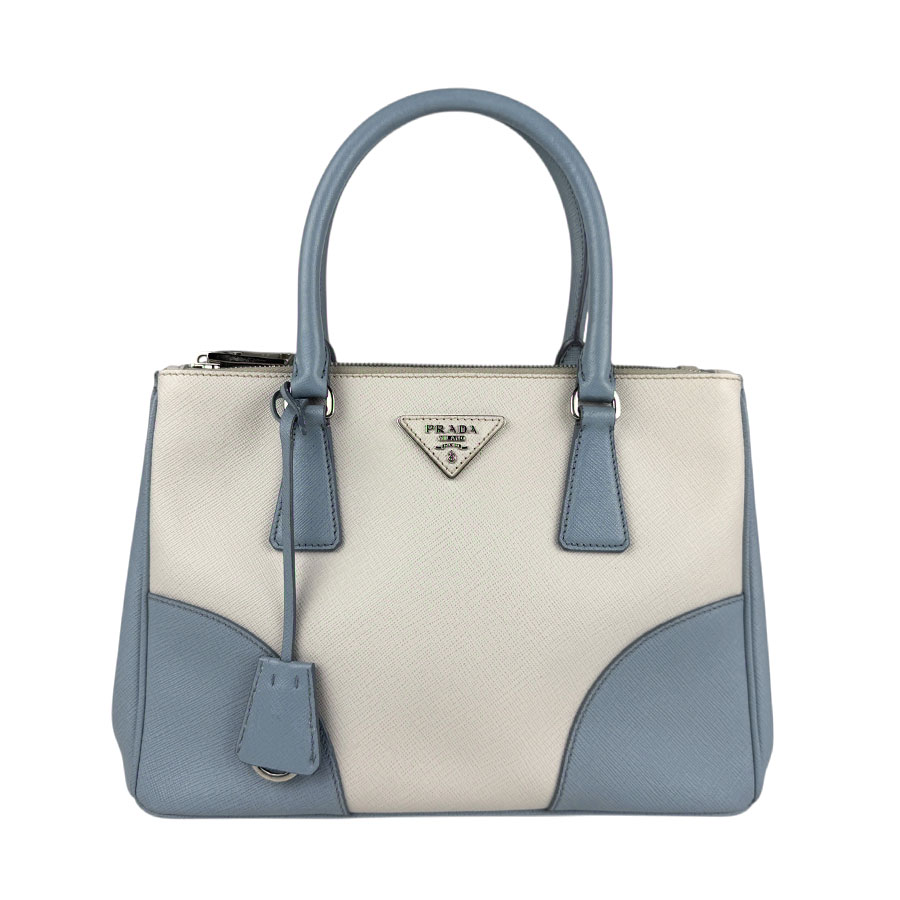 プラダ PRADA ハンドバッグ ショルダーバッグ レザー オフホワイト/ライトブルー シルバー レディース z5405