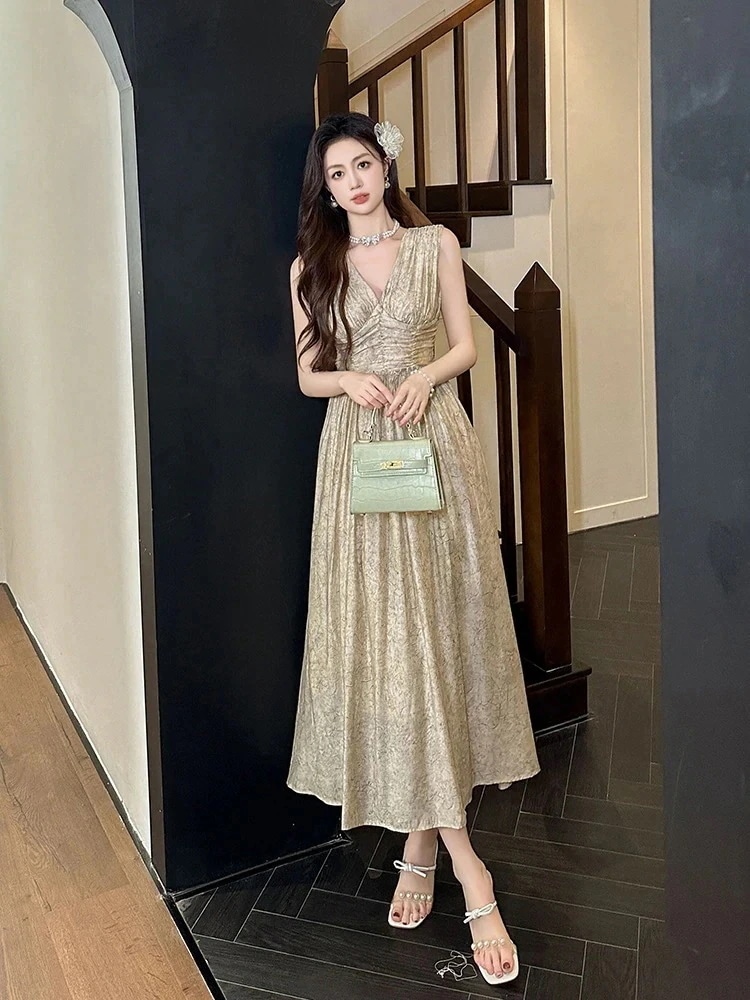 慈雨 フラワープリント フレアスカート ベージュ