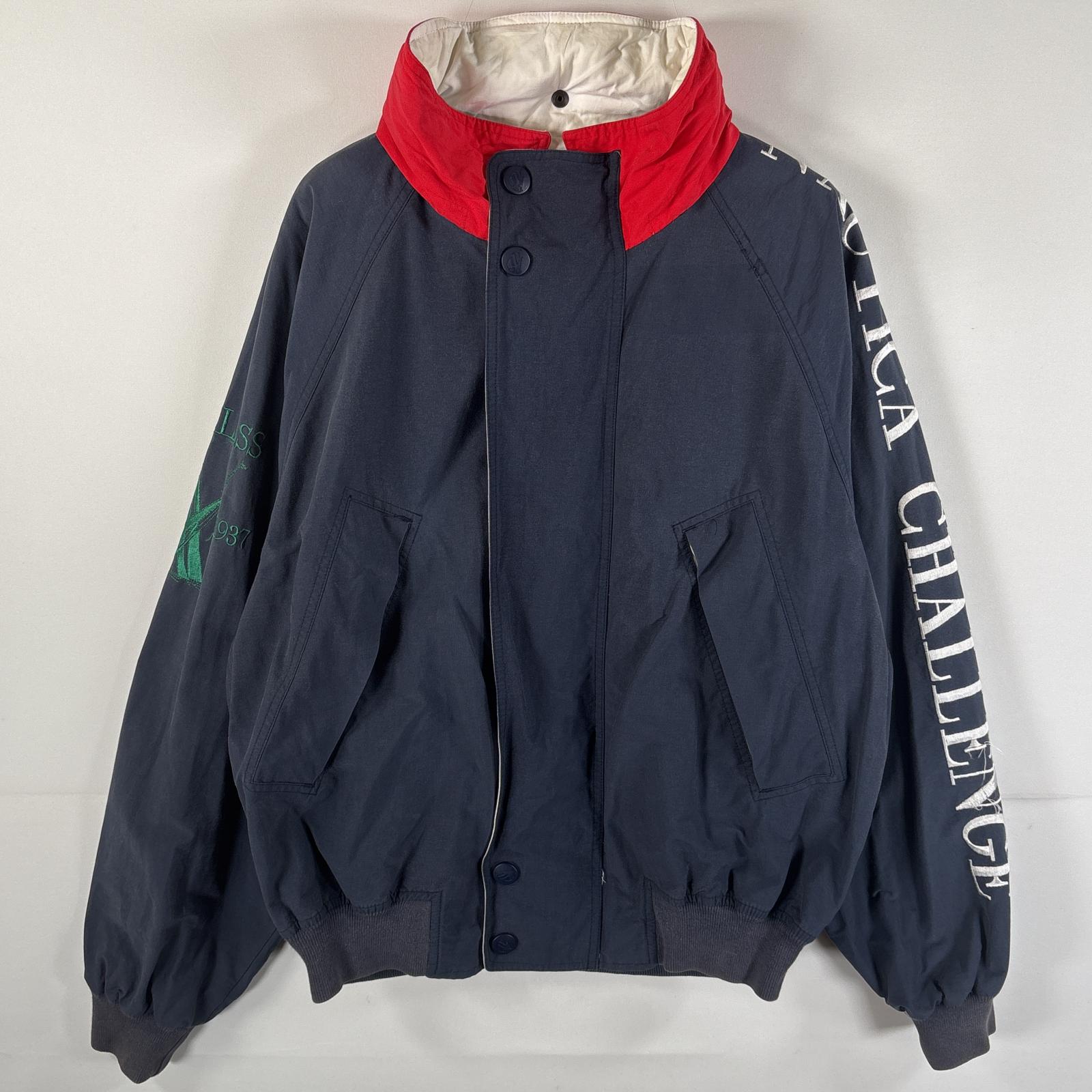 古着 90s/90年代 セーリングジャケット 袖ビッグロゴ刺繍 収納付きフード XL ホワイト メンズ