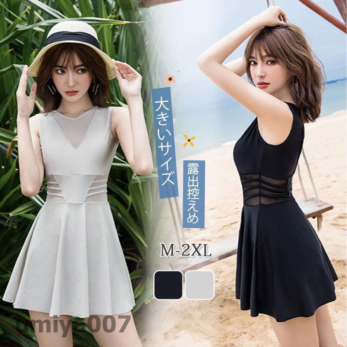 水着レディース ワンピース 体型カバー 20代 30代 40代 ママ水着 ビーチ 大人 可愛い リゾート 大きいサイズ 露出控えめ 黒 オールインワン 春コーデ