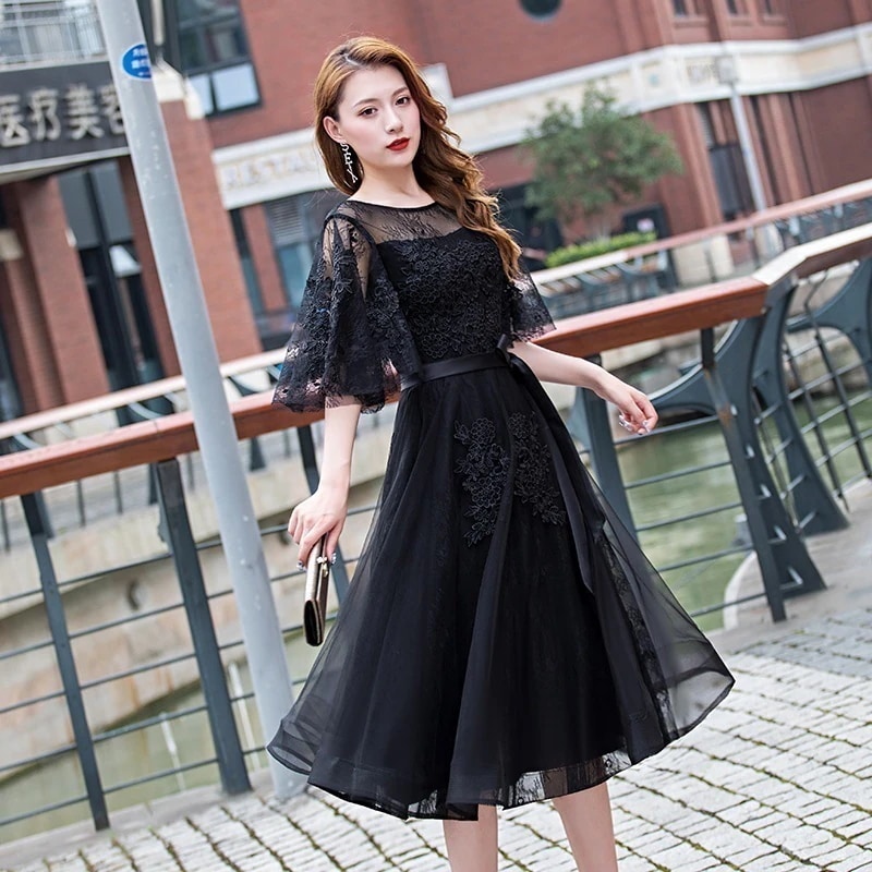 Hot!!!ワンピース Queen ワンピースブラックドレス 新作 発表会 二次会 気質 高級感 ロングワンピース 演奏会 ワンピース パーティードレス カップ 付きインナー