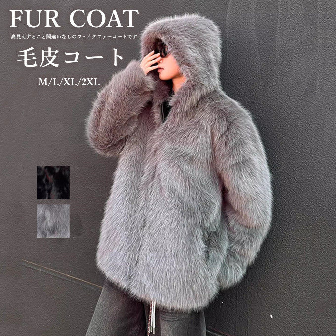 ファーコート メンズ 毛皮コート ショットコート アウター フォクス毛皮 フェイクファー ボアジャケット ジップアップ 厚手 フドー付き おしゃれ 暖かい 大きいサイズ 冬 冬物 贅沢 上品 ファッシ