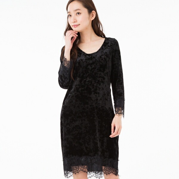 長袖 ベロア 膝丈ワンピース 1 ブラック SWFO225041 レディース