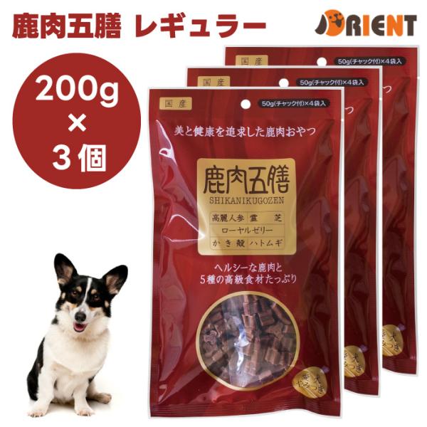 オリエント商会 鹿肉五膳 犬用おやつ レギュラー 200g x3個 ドッグフード 犬 餌 おやつ 漢方薬局監修おやつ