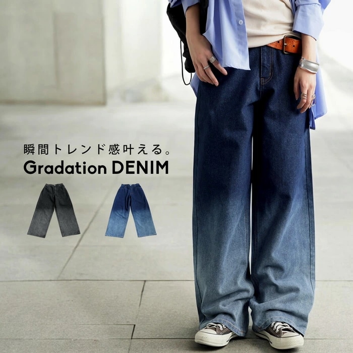 TREEMINGBIRD Knee Slit Wide Pants Black Denim TMB233PT