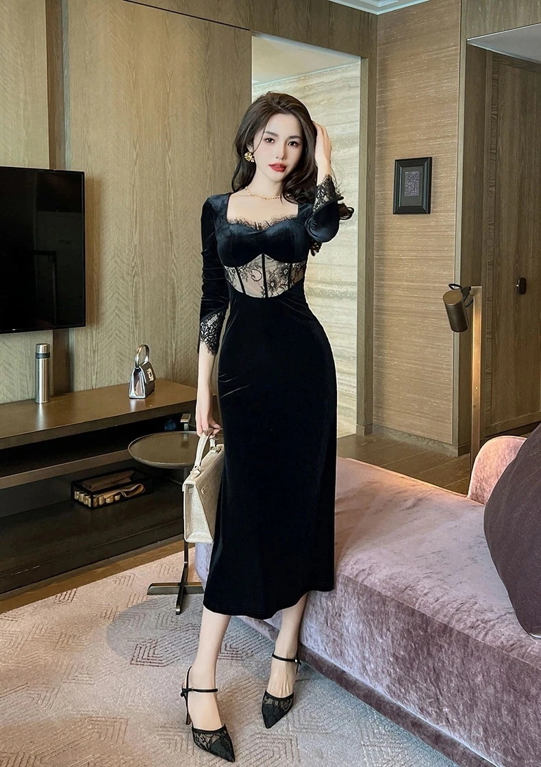 【人気の新作】パーティードレス 結婚式 ドレス 袖あり ロングドレス 演奏会 ドレス 二次会 ウェディングドレス Aライン 黒ドレス パーティー ピアノ お呼ばれ 披露宴sal03f【急速出荷】