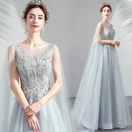 パーティードレス ワンピース 結婚式 お呼ばれ ドレス 服装 フォーマルドレス 大人袖付き 袖 服 上品 体型カバー 大きいサイズ ミセス 20代30代40代