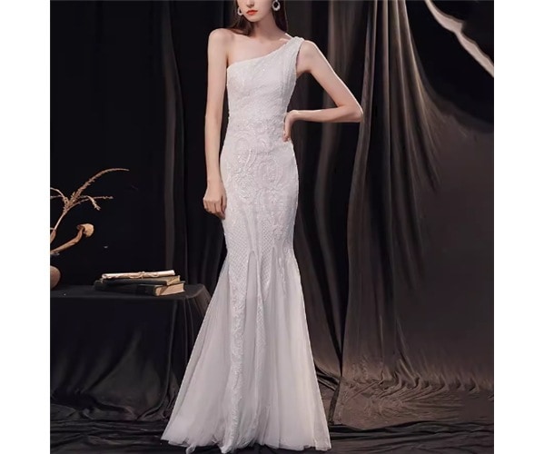 レディース ドレス パーティードレス ロング マキシ 袖なし ノースリーブ ワンショルダー スリム 細身 フィッシュテール スパンコール 異国風 大人可愛い きれいめ 上品 おしゃれ こなれ感 クール