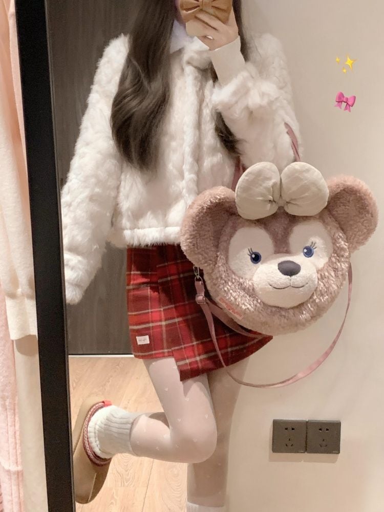 LE VERNIS ゴールド金具フェイクファーハンドバッグ ブラック ボア 黒