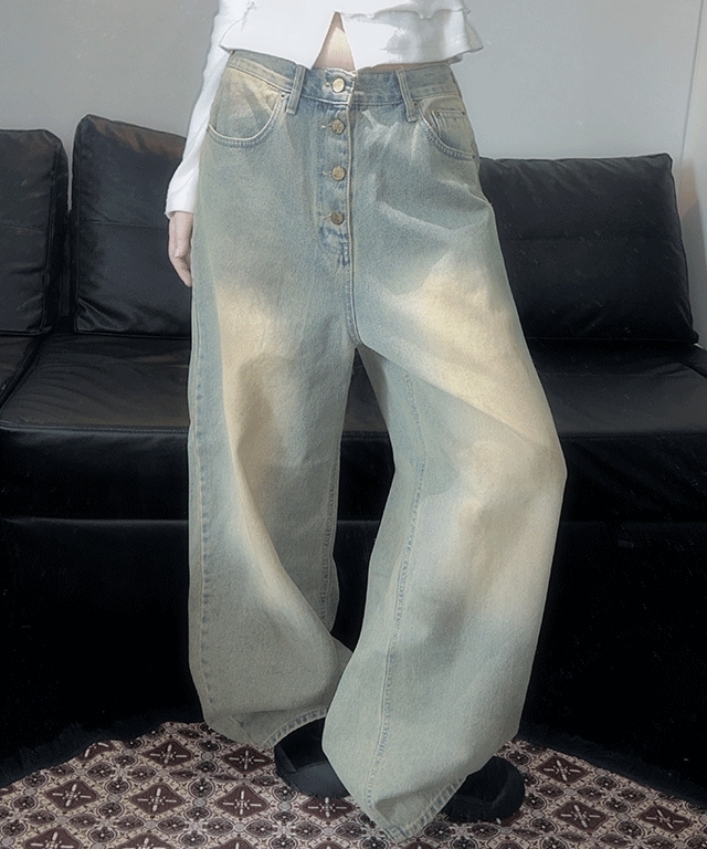 ビンテージ ボタン ワイド ジーンズロングパンツ