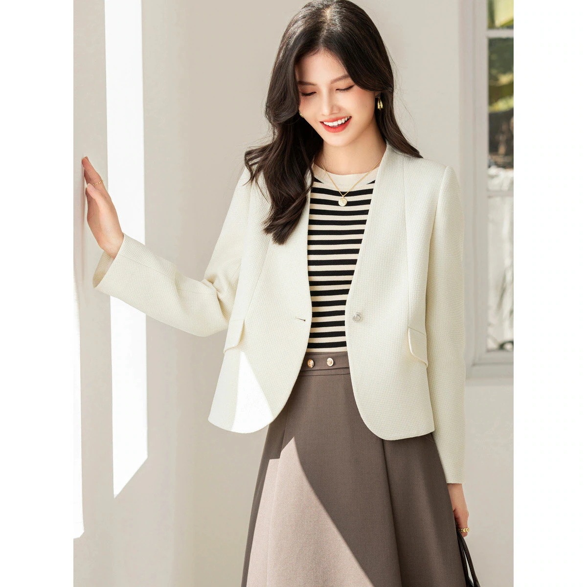 スーツ ジャケット カジュアル 女性用 ブラックノー カラー ウエスト スーツ ジャケット 2025 春 スタイル シンプルで エレガントな ハイエンド スカート