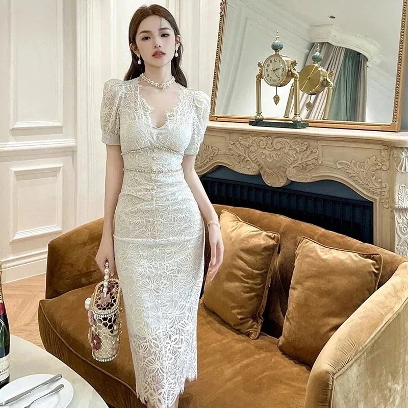 春夏改良軽少女レース刺繍中長小清チャイナドレス