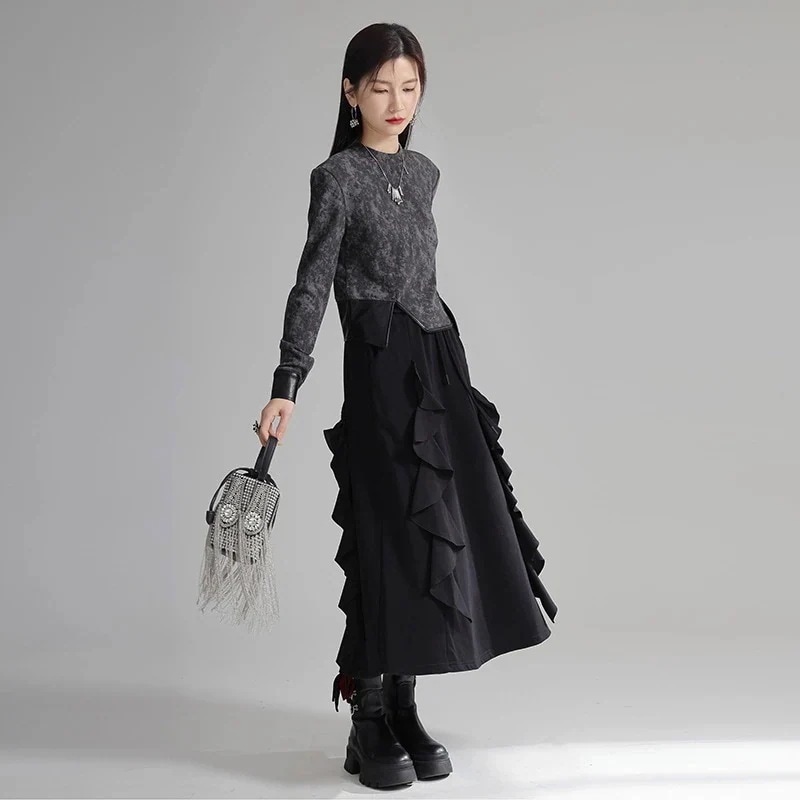 JFashion ロングスカート Aライン 厚手 フリル ゴムウエスト レディース おしゃれ スカート 関連商品は店で購入可能