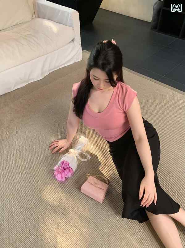 韓国の固体色の秋と冬の女性のための長袖tシャツの長袖tシャツ純粋な欲望の純粋な欲望のスタイルuネックスリムと汎用性のある女性のトップ