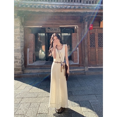 値下げ!新品 生成色6段 レイヤードロングワンピース 背の高い方用