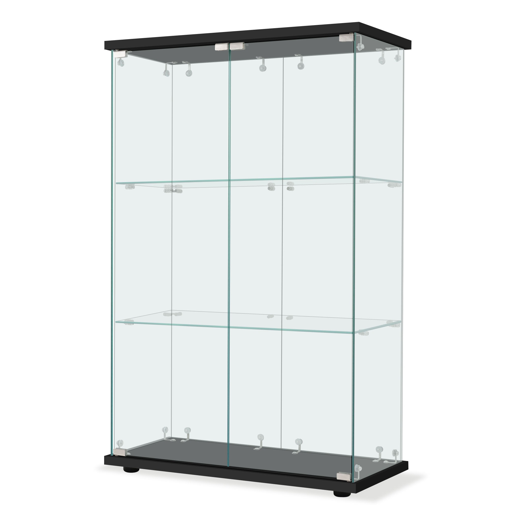 574コレクションケース 両扉タイプ 大型 ワイドタイプ ガラスディスプレイキャビネット フィギュアケース 3段 強化ガラス 全面ガラス サイズ:幅80.5×奥行36.5×高さ125.5cm ブラック
