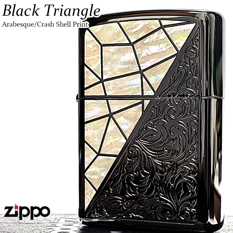 ZIPPO ライター トライアングル アラベスク ホワイトシェル模様 ブラックニッケル ジッポ 彫刻 黒 おしゃれ ギフト かっこいい メンズ プレゼント