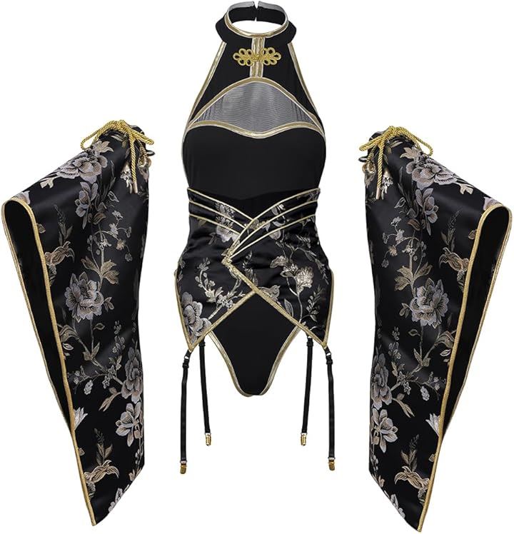 ハイレグロイヤルチャイナ服 セクシー コスプレ(ブラック, M)その他