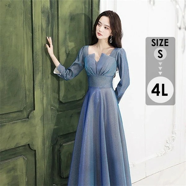 カーラ(01)長袖ロングワンピース ライトグレー ウエスト切替 ポケット付 秋冬
