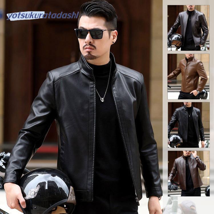【急速出荷】メンズ革ジャン 本革 秋冬 レザージャケット ライダースジャケット 立ち襟 スリム おしゃれ カジュアル バイクウェア シングル 男性用 上品 防寒防その他