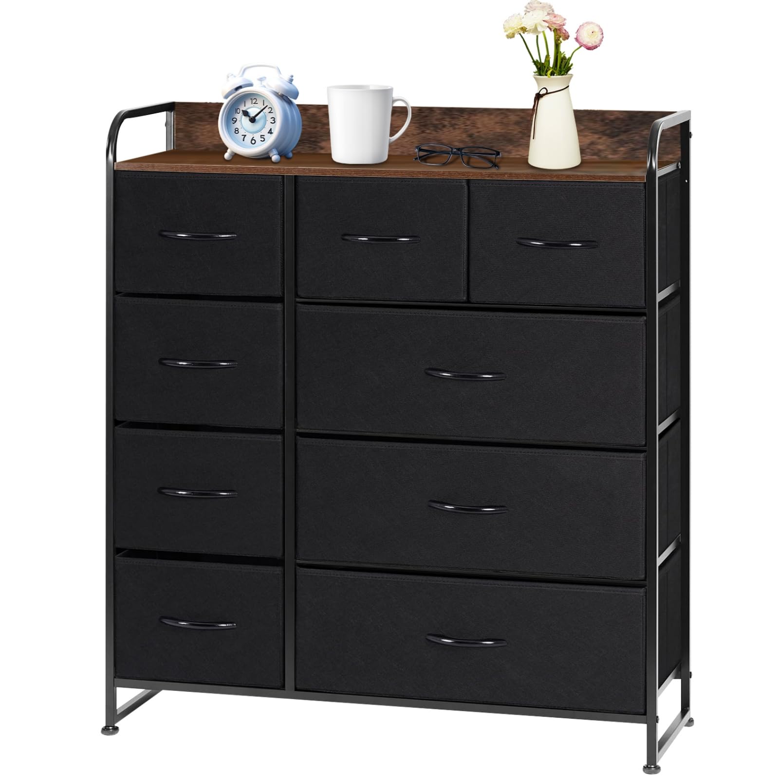 タンス 収納 チェスト 布製 引き出し 洋服収納 リビング収納 大容量 衣類収納 洋服タンス 衣装棚 箪笥 木製天板付き 簡単組立 多機能 転倒防止 AG-CTG01 (4段9杯 白+白)棚