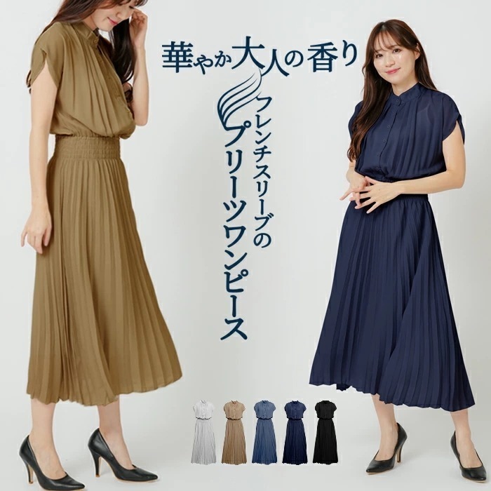 【急速出荷】 ワンピース レディース 半袖 秋冬 黒 ロング プリーツ ロングワンピース ミモレ きれいめ プリーツワンピース 無地 マキシワンピース オフィス カジュアル 大人 おしゃれ 20代その他 ワンピース・ドレス
