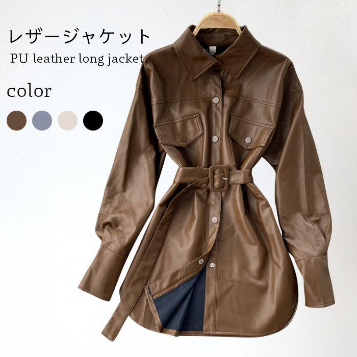 【毎日厳選 】にPUレザージャケット レディース レザージャケット ロングジャケット ジャケット ロング丈 PUレザー フェイクレザー 長袖 ライトアウター バレンタイン プレゼント