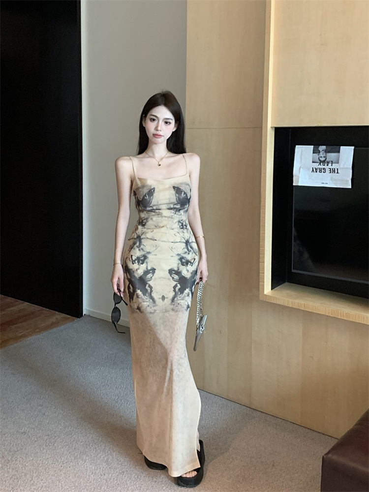 GYDA バックオープンジップスリットリブニットロングワンピース