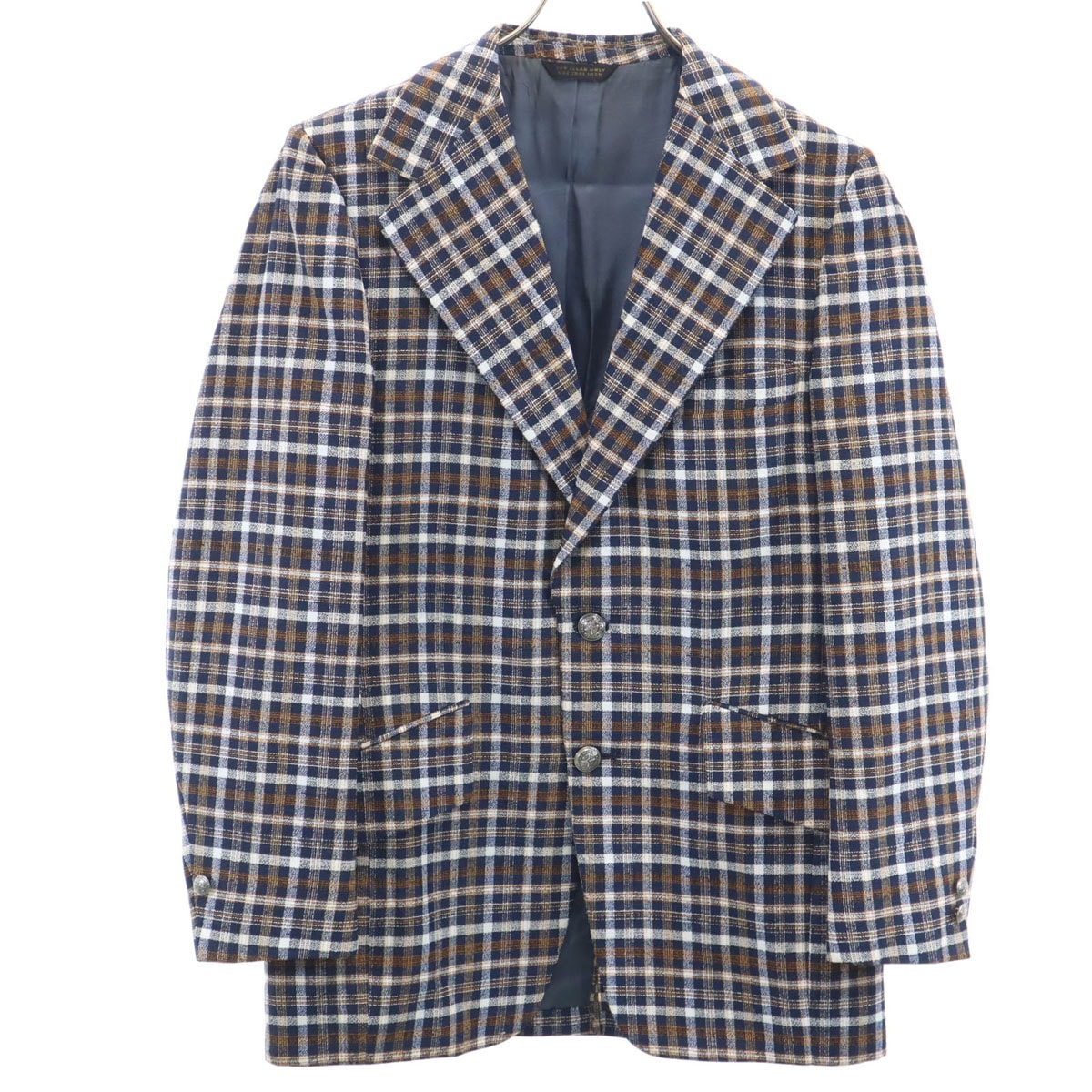 80s ヴィンテージ ユニオンチケット チェック柄 テーラードジャケット ブラウン メンズ 古着テーラード