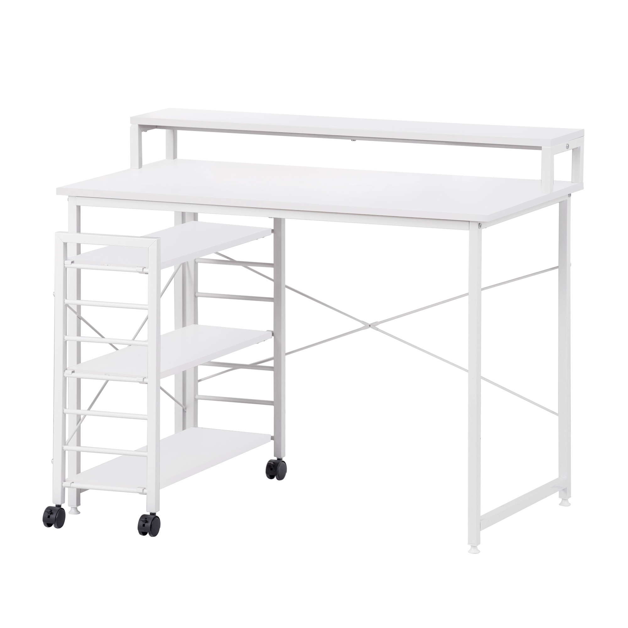 【国内出荷】【新品登場】【ホワイト】パソコンデスク キャスター付きで移動可能ラック付き デスク ワークデスク オフィスデスク 学習デスク机