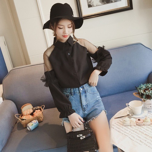 エプノック レースシアーロングスリーブシャツ(グレー/L)トップス