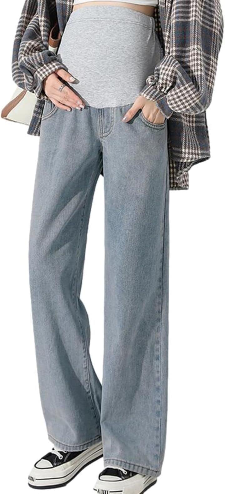 マタニティ ストレートデニム レディース パンツ 産後 ゆったり ウエストゴム アジャスター付き シワなし マタニティパンツ ビッグ 動きやすい デイリーユース(ライトブルー, XL)