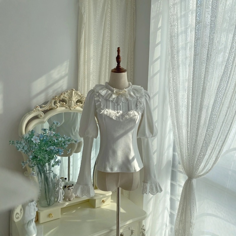 Eaphi volume sleeve jacquard blouse