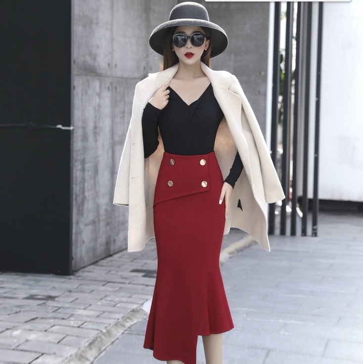 スカート レトロ モテアイテム スカート ボトムス ロングスカート タイトスカート ロング ロング丈 7分丈 ミディアム丈 スリム タイト 細身 マーメイド スマート ウエストマーク ファスナーロングスカート