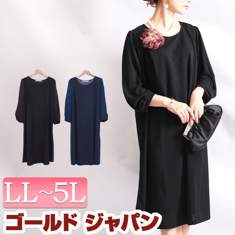 大きいサイズ レディース ワンピース カットジョーゼットワンピース ワンピ 膝丈ワンピース 膝丈 長袖 ストレッチ ジョーゼット 切替え 無地 タック フレア 通勤 オケージョン セレモニー 喪服 礼その他 ワンピース・ドレス