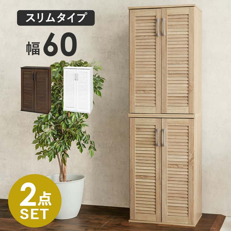 ルーバー シューズラック2点セット 幅60cm 下駄箱 靴入れ 通気性 スリム 21足 傘立て 木製 玄関収納 リビング 北海道沖縄離島はお届け不可シューズラック
