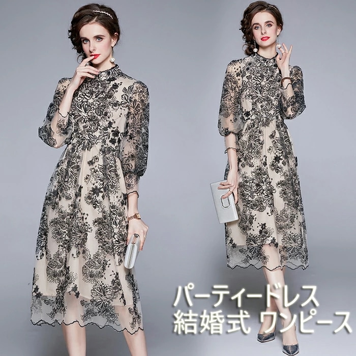 結婚式 ワンピース パーティードレス ミモレ丈 フォーマルドレス ドレス お呼ばれ フォーマル ワンピース袖あり 結婚式 ワンピース パーティードレス 大きいサイズXXL 入園式二次会 謝恩会 同窓会その他 ワンピース・ドレス