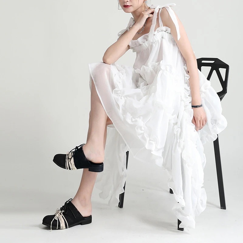 女性用海辺での休暇サスペンダードレス三亜旅行服写真撮影ロングバックレスホルターネックスーパーフェアリービーチスカート