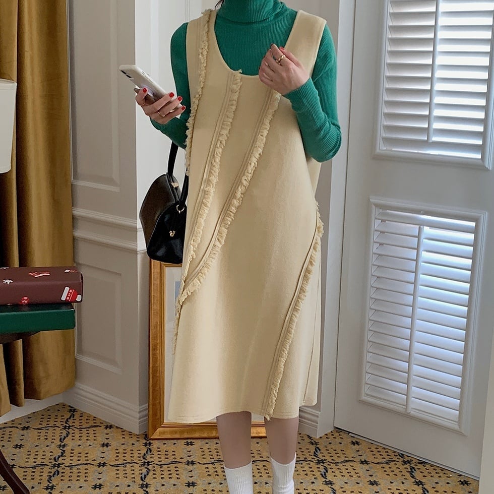 フォックスファー襟 ロングコート アンゴラ混 Aライン