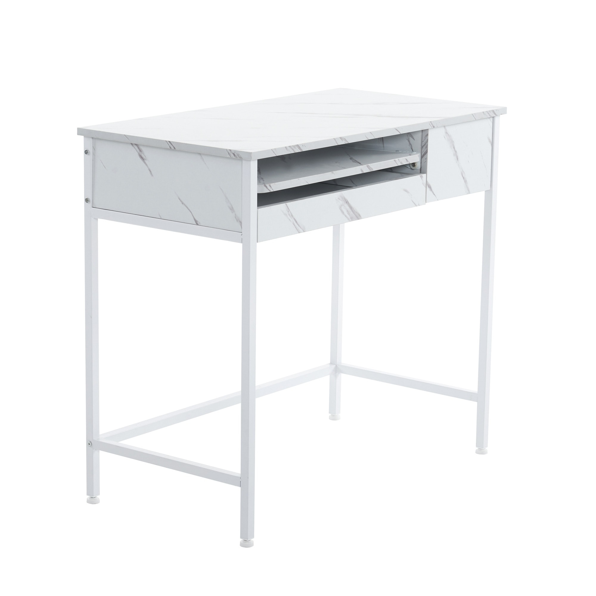【国内発送,送.料無料】A99【新品登場】【ホワイト】パソコンデスク 引き出し付き 収納台 pcデスク 机 大理石柄 おしゃれ キーボード付 ミシン台 学習机 勉強机 新作