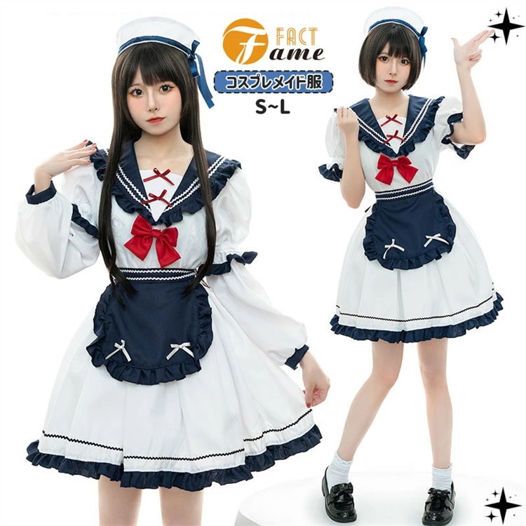 ハロウィン メイド コスプレ セーラー服 メイド服 衣装 レディース 大人 ネービー レッド 蝶結び ロリータ ワンピース 仮装 ゴスロリ 萌え 女性 男ウケ コスチューム オシャレ メイドカフェ マ