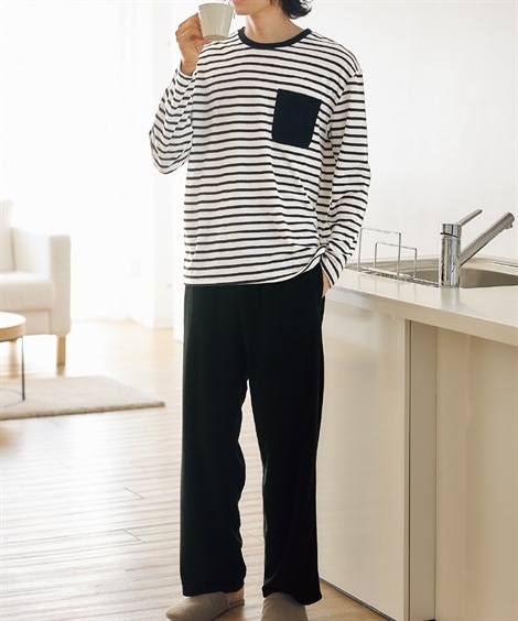 uncrave WHITEシルキーウール ボーダーハイネックニット