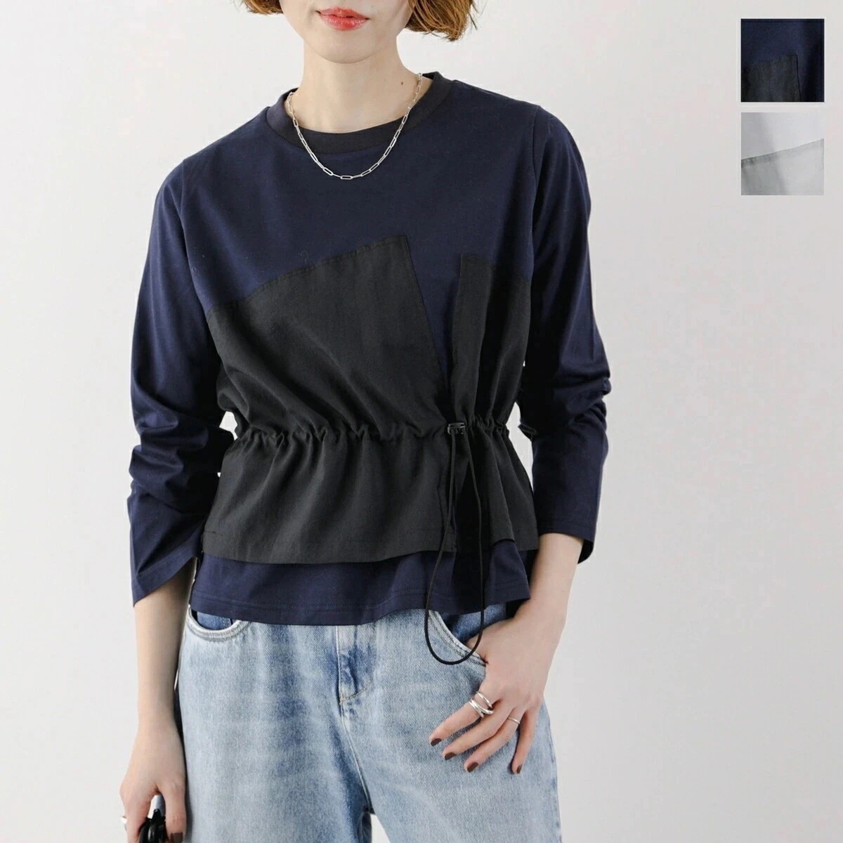 ![[韓国ファッション] リラックスフィット エッセンシャル ストリング バンディング ロング ワイド デニム パンツ](https://gd.image-qoo10.jp/li/528/634/7383634528.jpg)