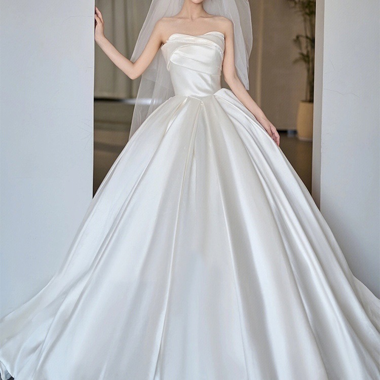 ドレス 衣装 ウエディングドレス 披露宴ドレス ロングドレス プリンセスライン 切り替えデザイン 胸元 チューブトップ 光沢 ロング丈 バックシャン ステージドレス かわいい 大人可愛い きれいめ