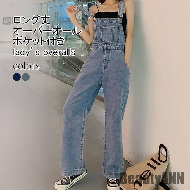 新生活 デニムサロペット レディース オーバーオール 無地 薄手 ワイド ロング丈 ポケット付き 体型カバー ゆったり シンプル 春夏秋 秋 春 冬 秋ファッション 冬物 春物 秋物 プレゼント ギフ