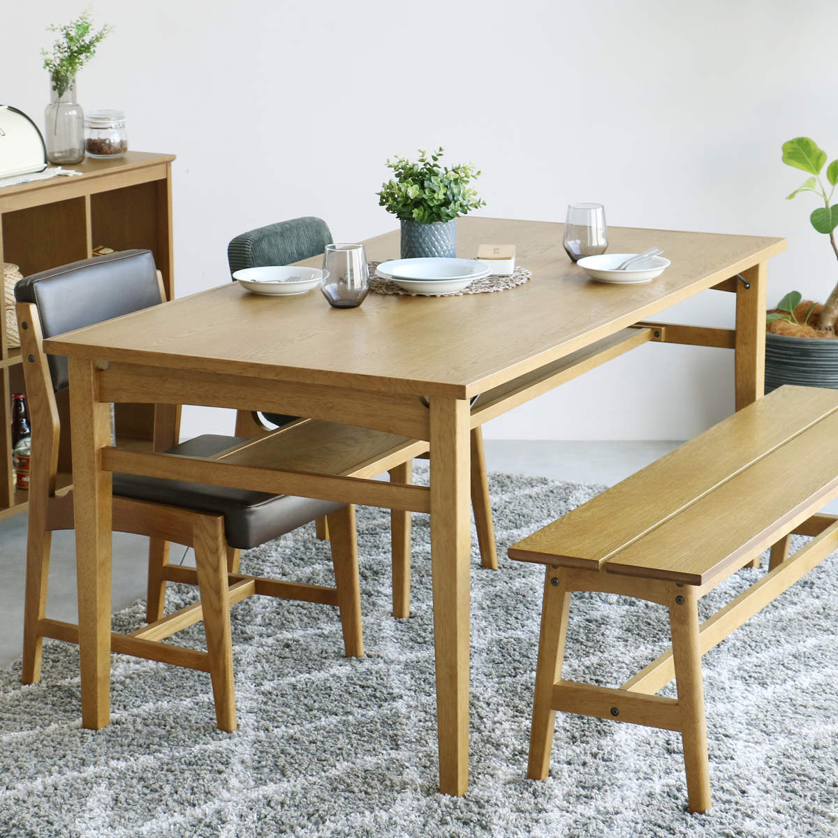 ダイニングテーブル 幅150cm ソフトヴィンテージ風 Rasic 4人掛け 食卓 ダイニング テーブル 四角 長方形 天然木 木製 北欧 ナチュラル シンプル 天板下収納テーブル